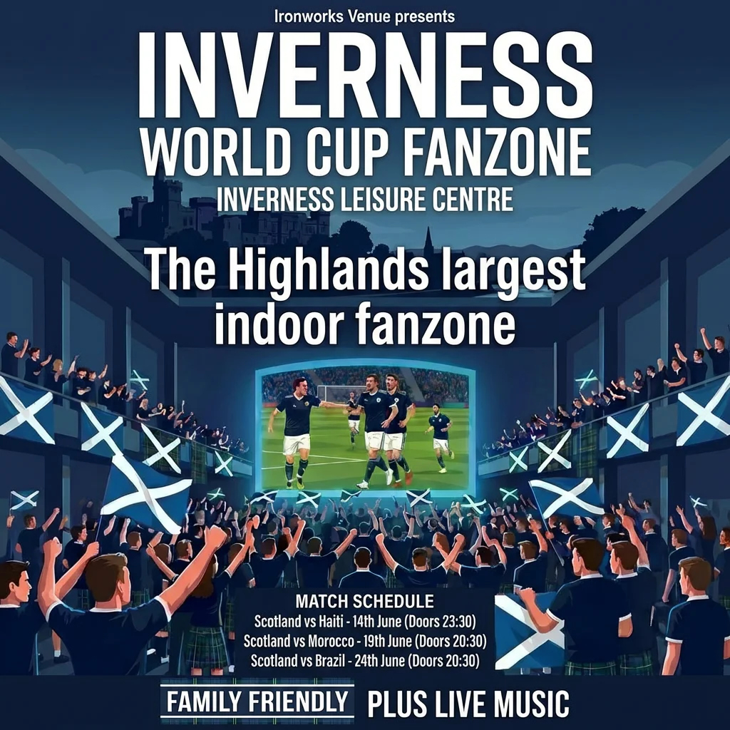 WORLD CUP FANZONE ANNOUNCED FOR INVERNESS The Highland’s largest indoor world Cup Fanzone has been announced for Inverness Leisure Football fans are set for an unforgettable World Cup experience as the region’s largest indoor World Cup Fanzone comes to Inverness Leisure, screening all three Scotland World Cup group games live on a giant screen. Presented… Read more »